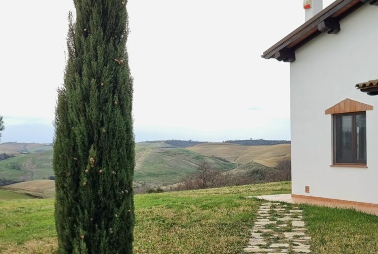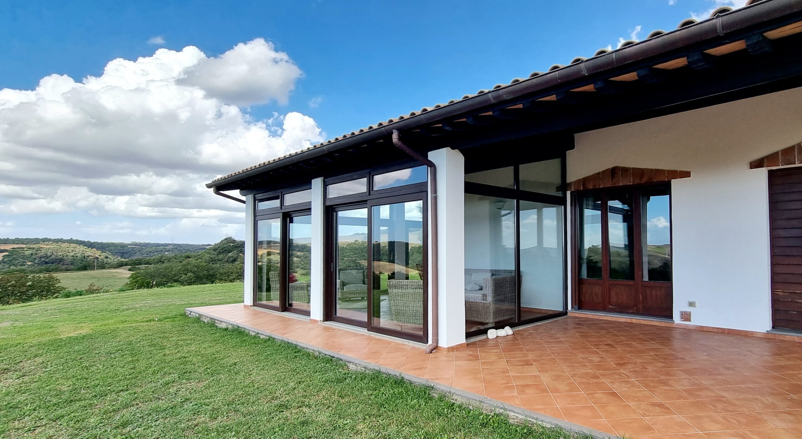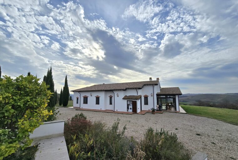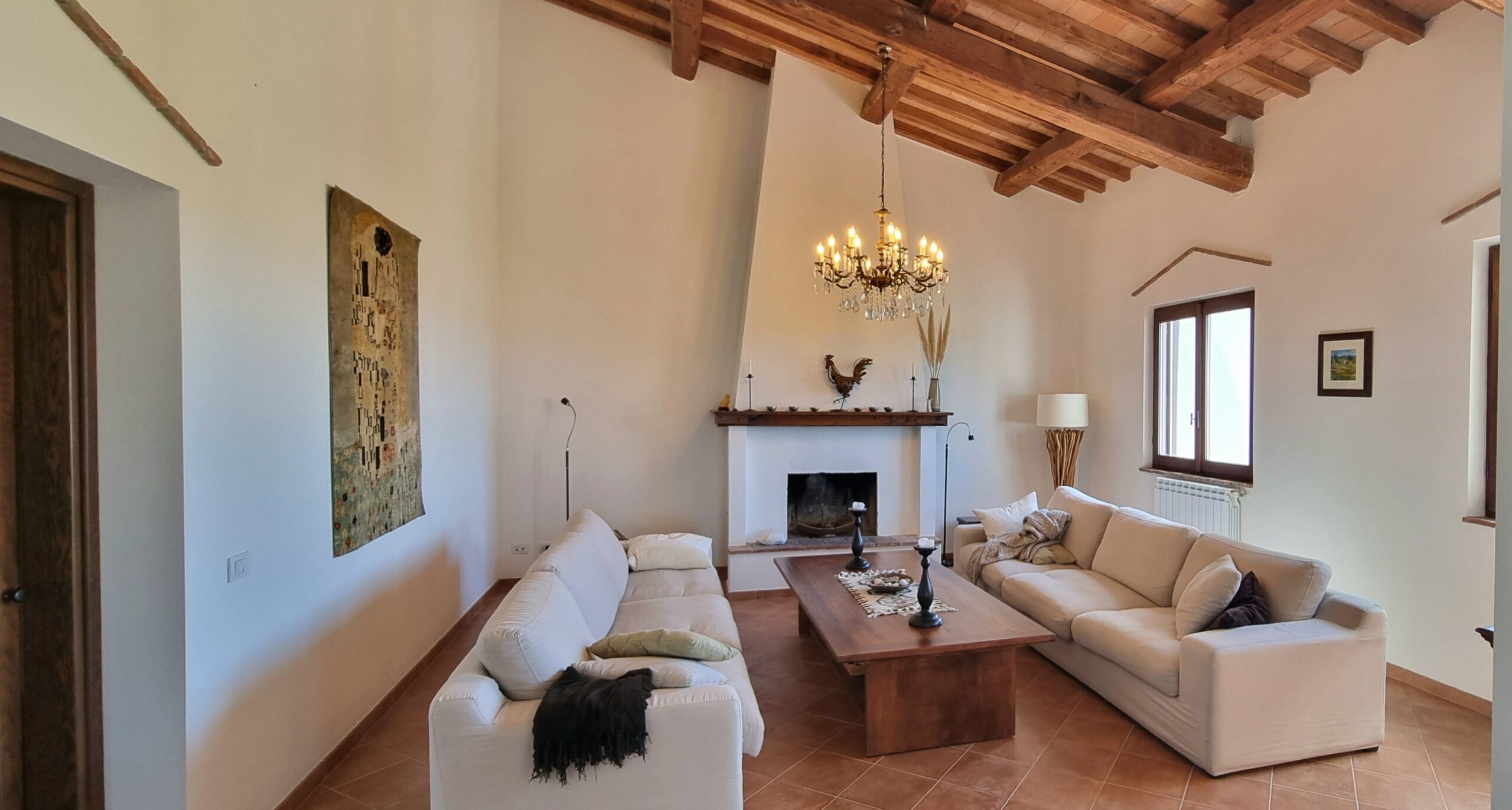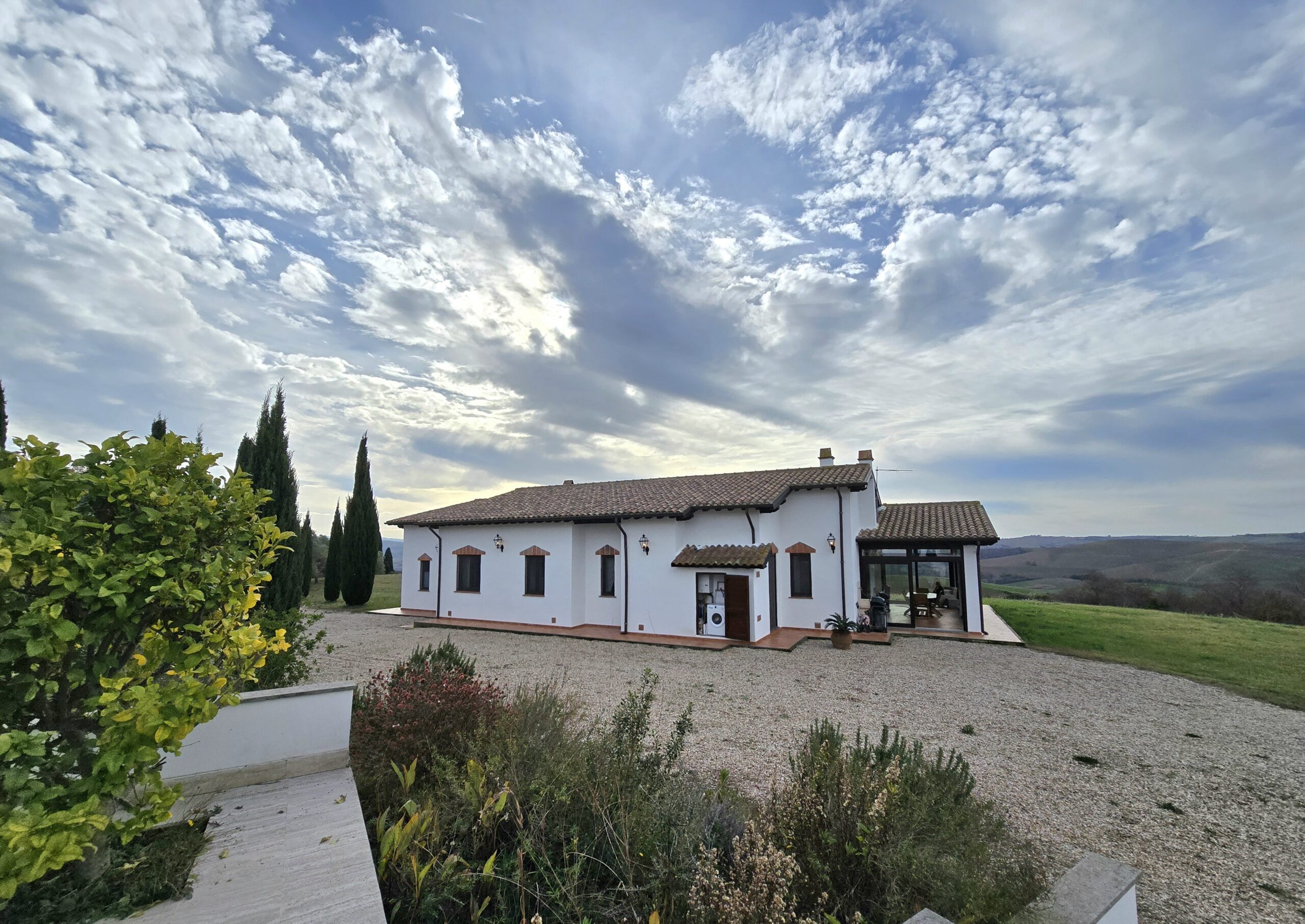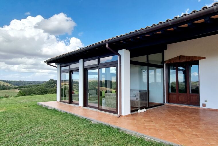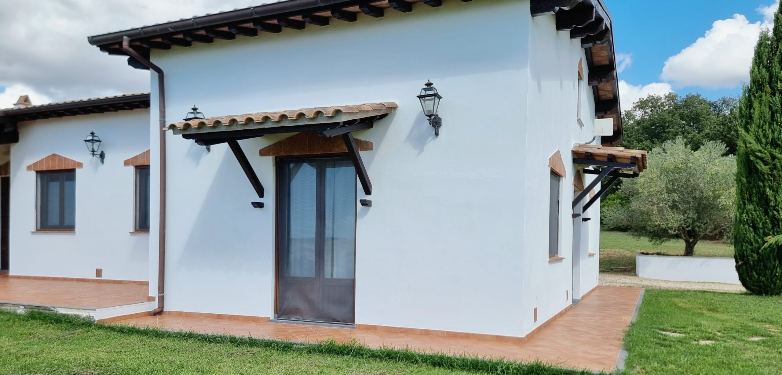 Sulle morbide e verdi colline in zona etrusca, tra Tarquinia e Tuscania, in posizione dominante e tranquilla, da cui si godono tramonti incredibili ed ogni sera diversi, abbiamo in vendita questa villa in stile rustico ed elegante, su un unico piano, estremamente confortevole.