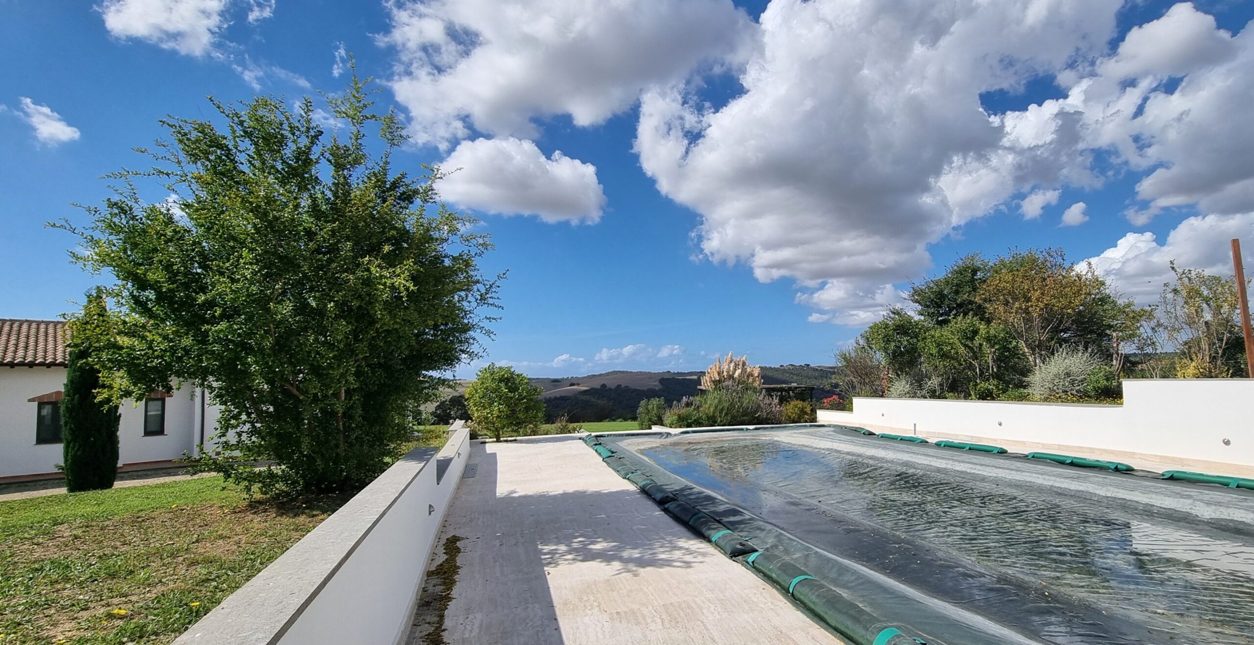 Terreno recintato di circa 3 ettari, con una bella piscina pavimentata.