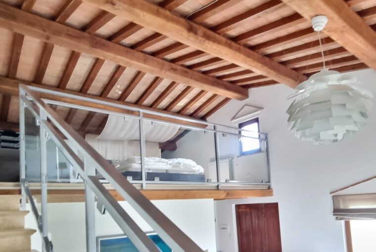 Separatamente c’è una zona ospiti indipendente con stanza, bagno e una zona living con soppalco, che offre la possibilità di vivere momenti di intimità o socializzazione.