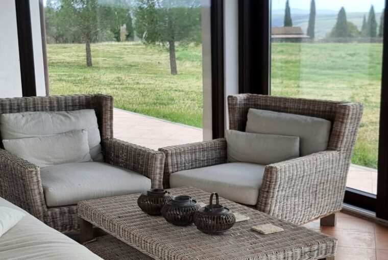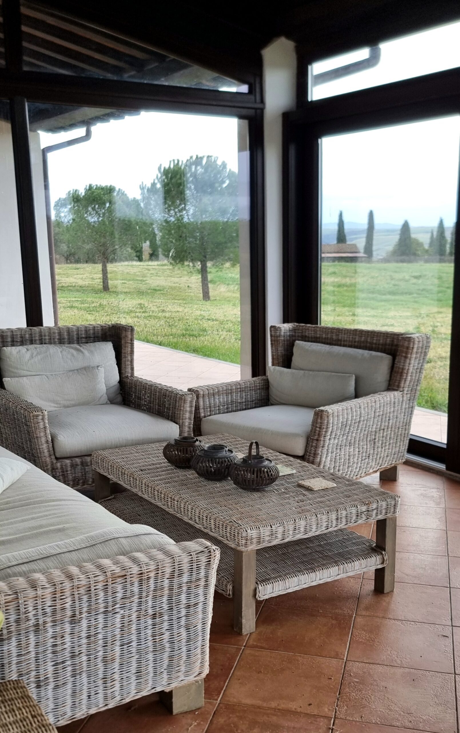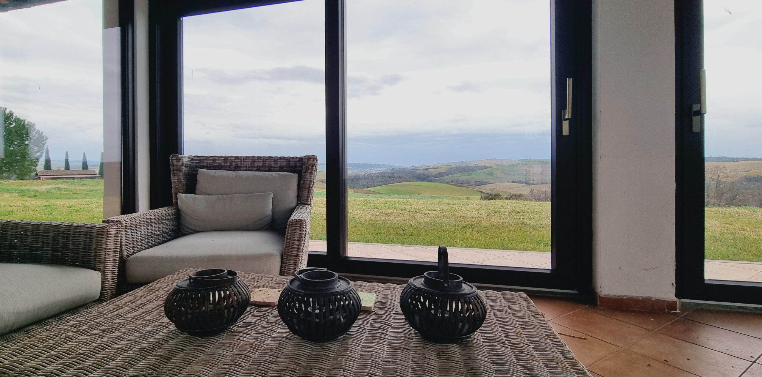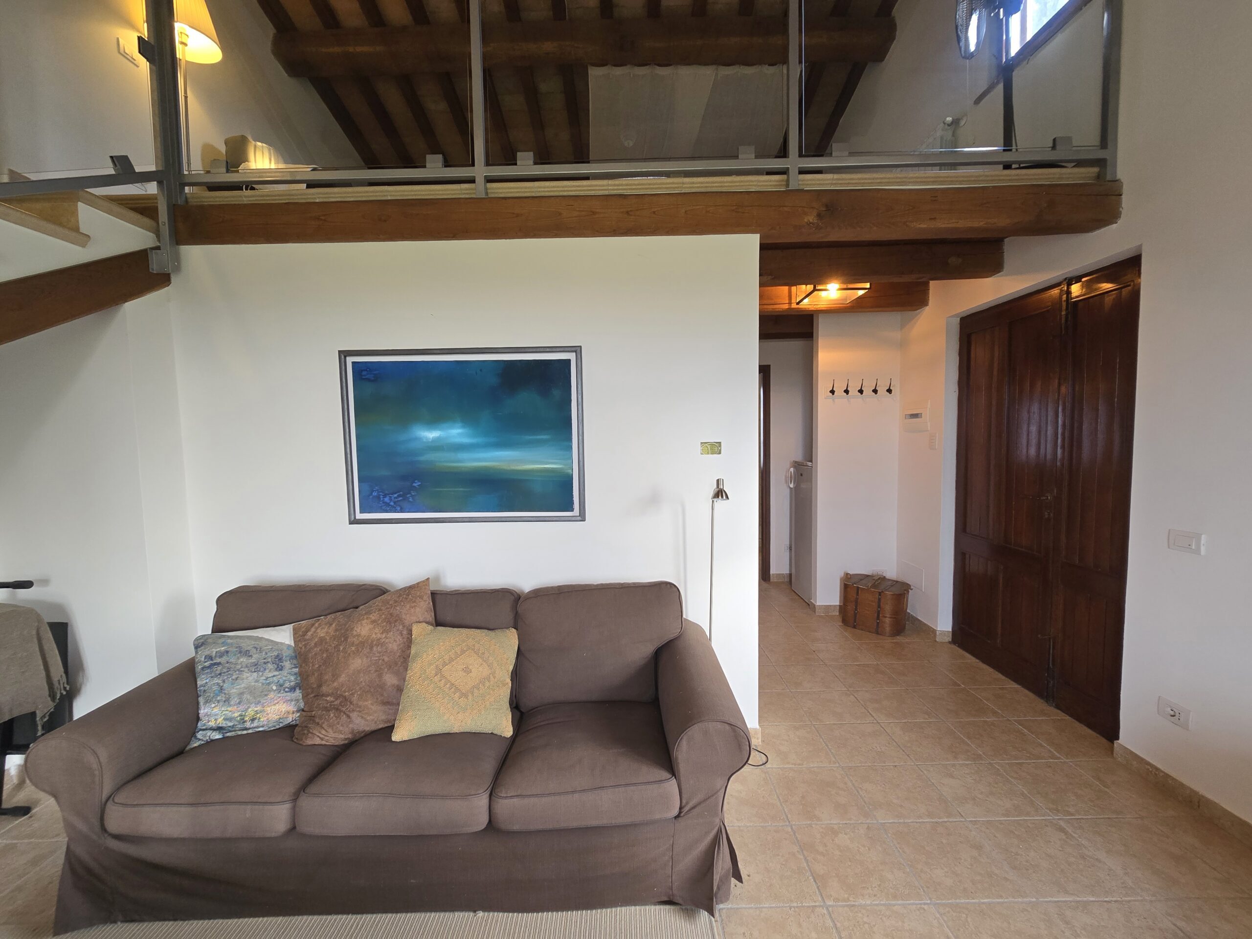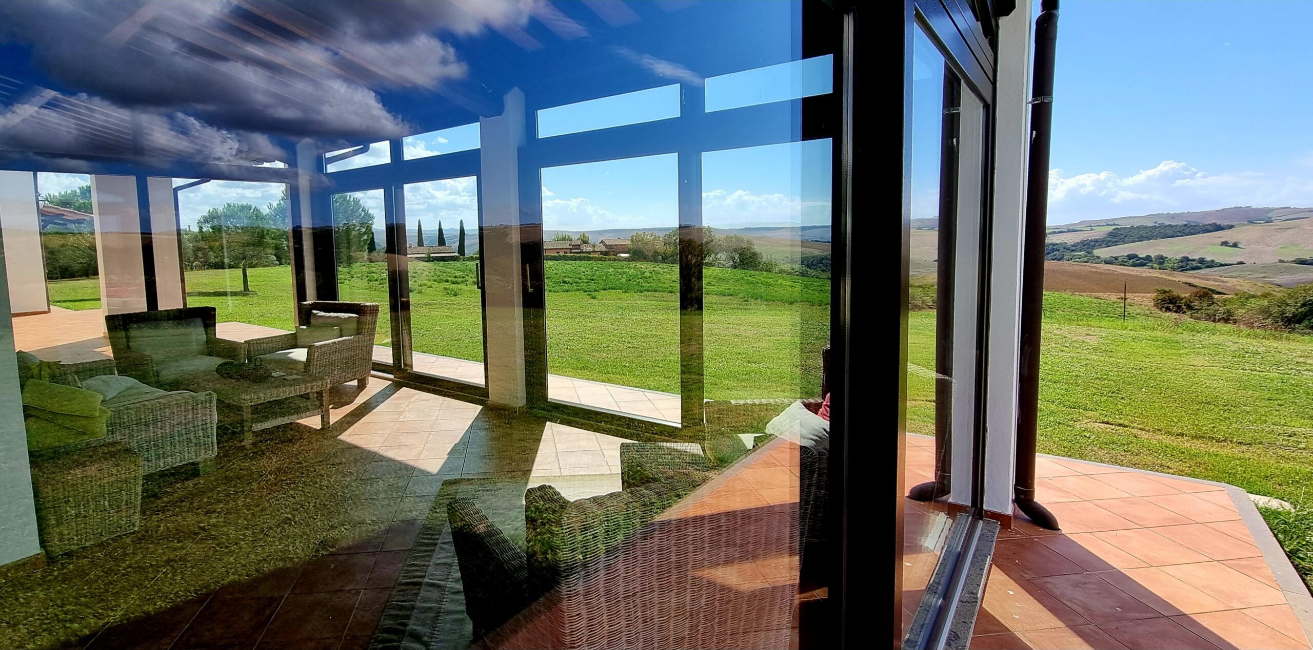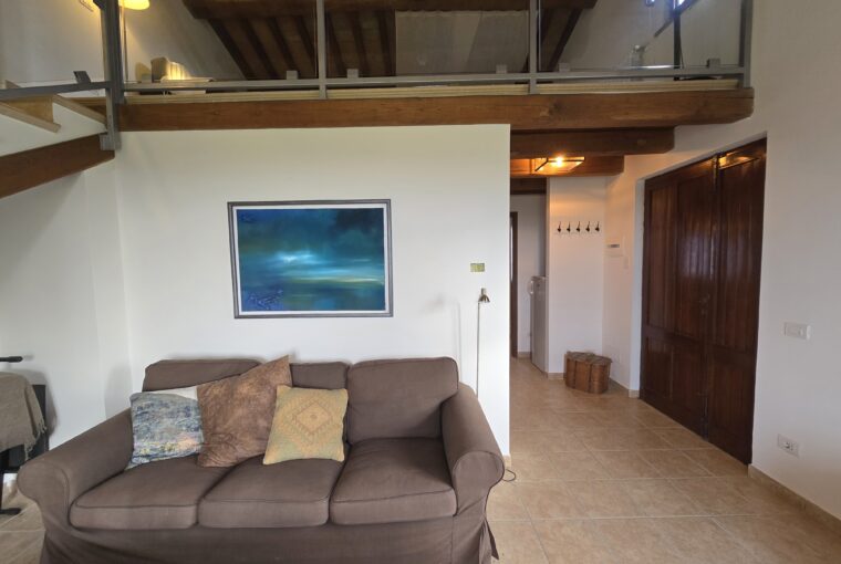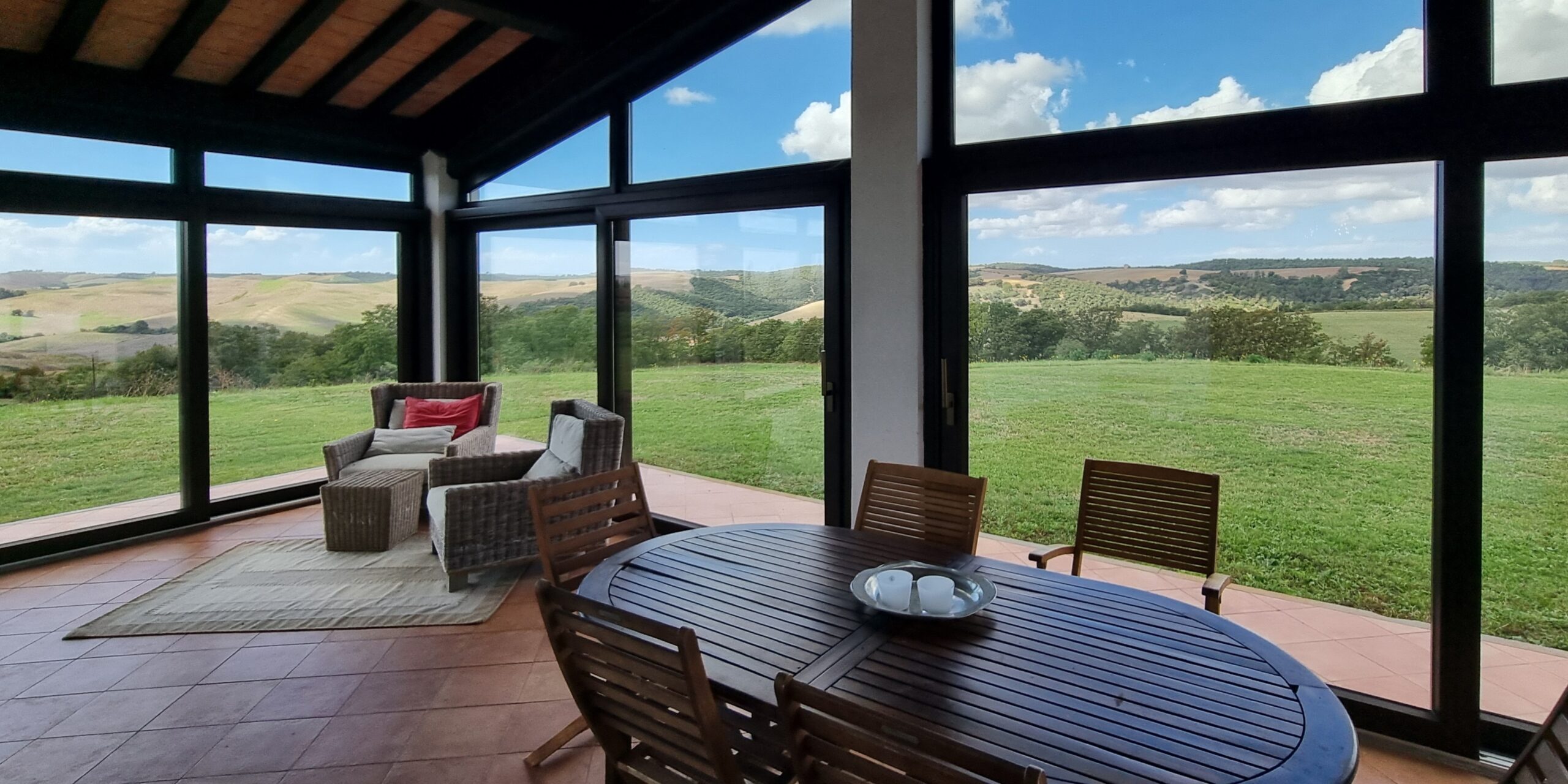 Entriamo nell’abitazione con ingresso sul grande soggiorno e troviamo una gradevole cucina a vista, in un ambiente che dona una sensazione di spazio e libertà. Dal soggiorno si accede ad una preziosa veranda chiusa a vetri (circa 35 m²), da cui godersi la vista sulle colline in qualsiasi stagione.